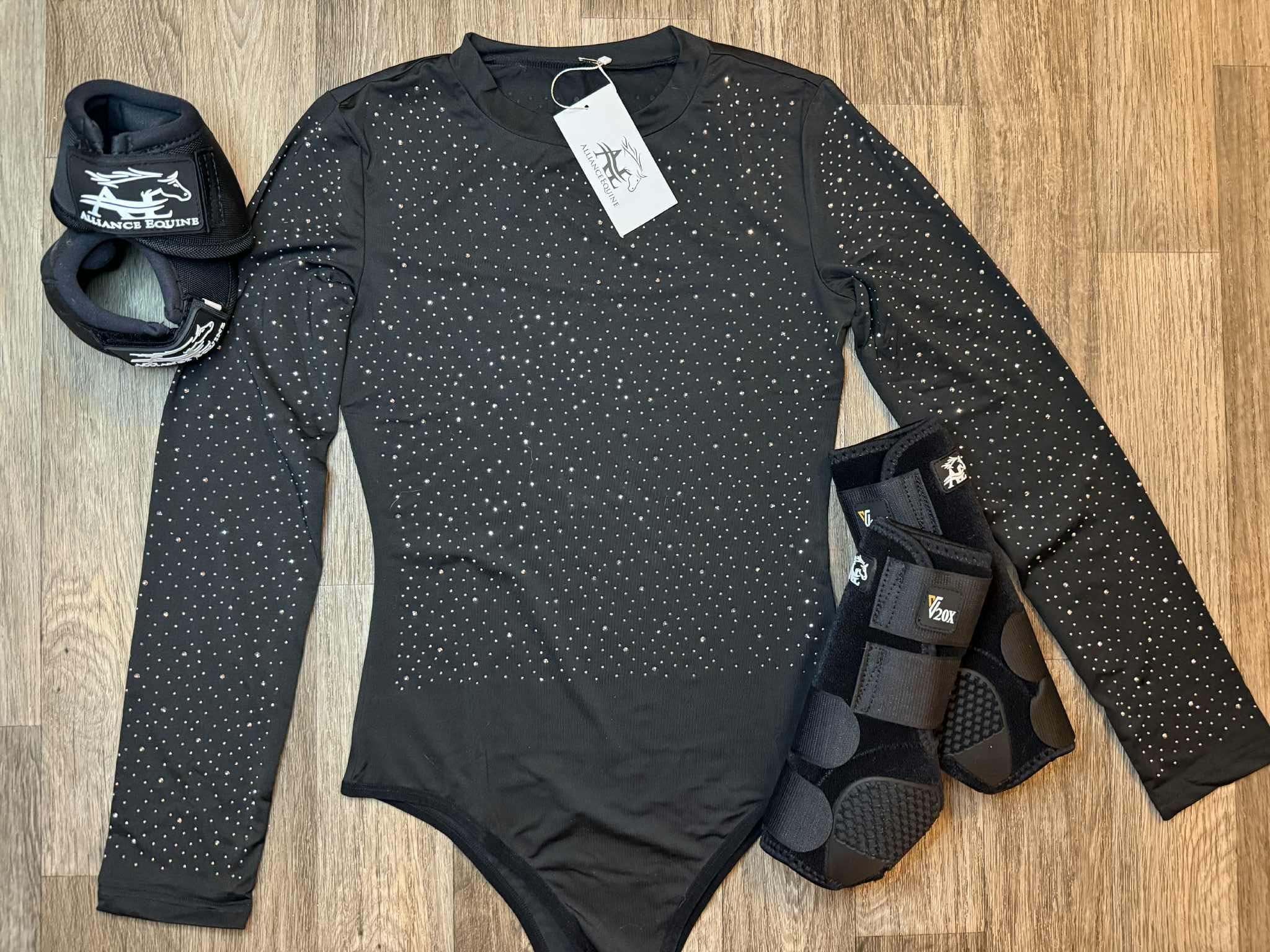 Add a touch of sparkle to your wardrobe with our new Rhinestone Bodysuits, now available at Alliance Equine. These eye-catching pieces are perfect for making a statement — whether you’re in the arena, at an event, or simply want to stand out.